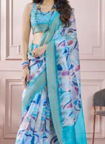 - The Aqua Blue Soft Silk Printed Zari Woven Saree is a timeless piece that combines comfort elegance and versatility. Its sophisticated design and customizable blouse ensure that it can be styled to suit a variety of formal occasions. Ideal for women who appreciate understated luxury this saree is a wardrobe staple that promises to leave a lasting impression wherever you go.