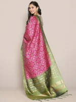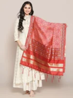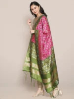 Add a touch of elegance to your wardrobe with this exquisite piece of beautiful Banarasi Silk Dupatta. Swathed with elegant Patola style weaving all over, this classic stunner is a must in your ethnic collection.