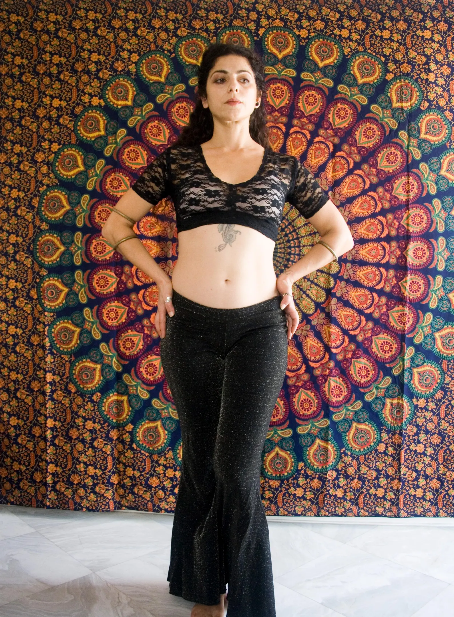 Home Blouse Half-Sleeve Blouse Black Lace Choli Top – Your size – Short Sleeve Tribal Top – ATS, Tribal Fusion, Tribal Bellydance