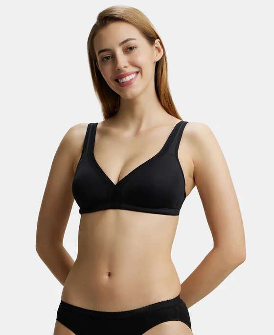 Home Bra Non Padded Bra Black Soft Touch Microfiber Elastane Stretch Full Coverage Everyday Bra