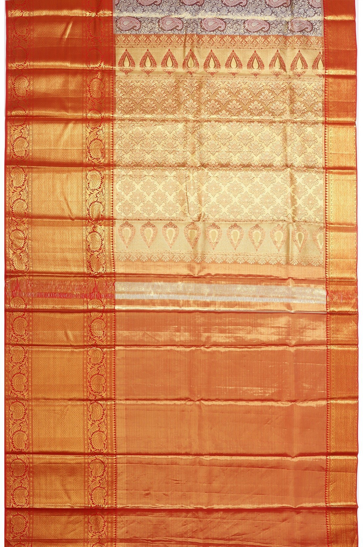 Gold Kanchipuram Silk Saree with Floral Design and Sea Green Border