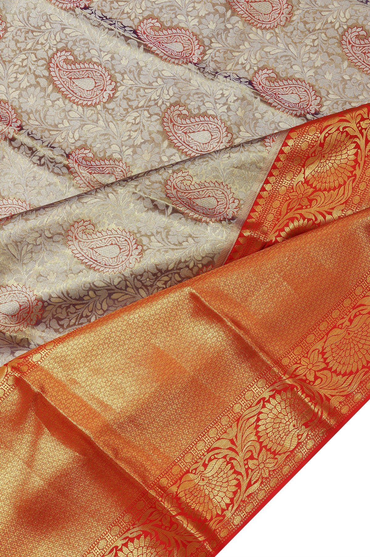 Home Saree Blue Kanchipuram Silk Saree with Floral Zari and Red Pallu Regular price