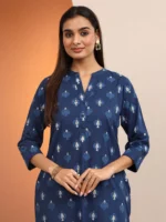 Blue Printed Cotton Straight Kurta