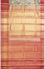 Gold Kanchipuram Silk Saree with Mayil Motifs and Pink Pallu