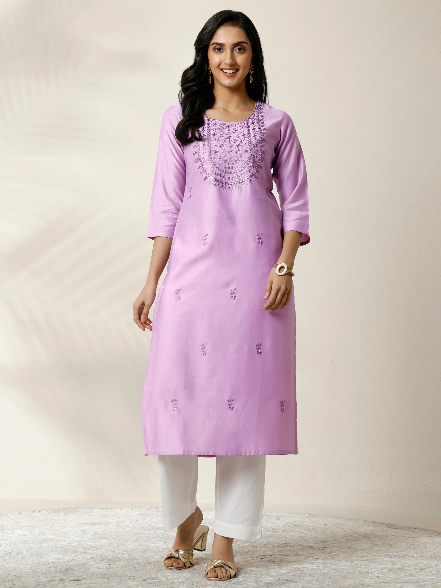 Lavender Embroidered Silk Blend Straight Kurta