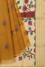 Ironing: Iron the saree on a low to medium setting while it’s slightly damp. Use a cotton or muslin cloth on top of the saree to protect delicate embroidery or zari work.