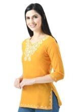 Mustard Yellow Resham Work Short Kurti