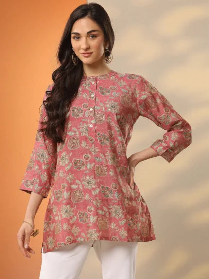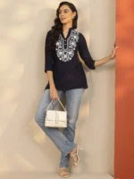Navy Blue Yoke Design Rayon Straight Short Kurti