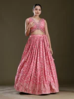 Home Lehenga Onion Pink Sequins Soft Raw Silk Readymade Lehenga