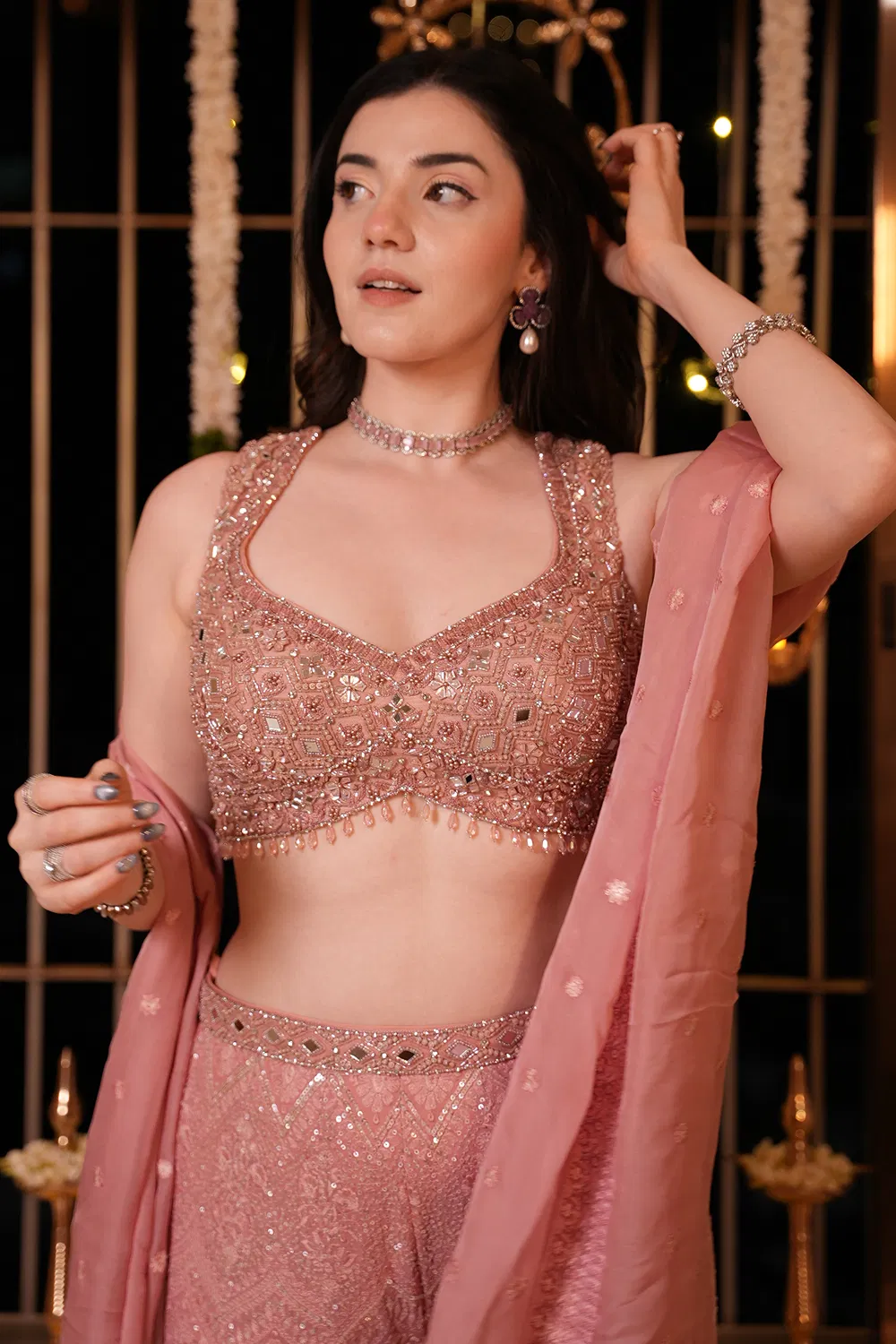 PINK FIT TO FLARE PALAZZO PANT SET AND A HAND EMBROIDERED BLOUSE and DUPATTA