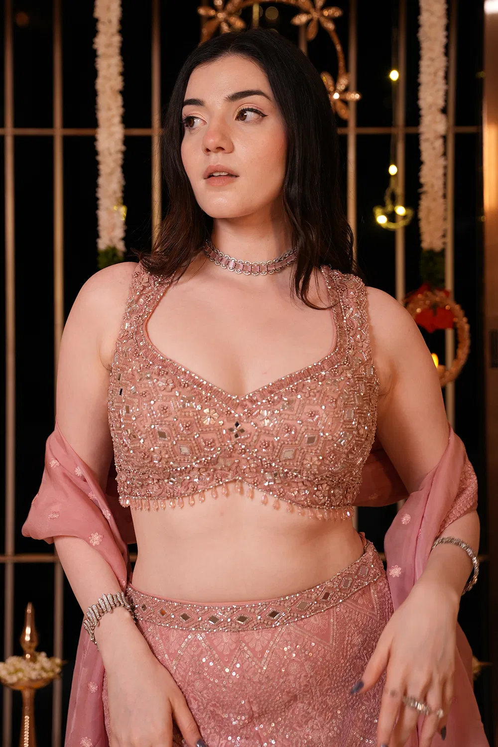 Nafeeza x Tyohaar | Elbow Sleeves Baby Pink FlexiFi Gota Embellished Saree Blouse with Plunging V-Neck