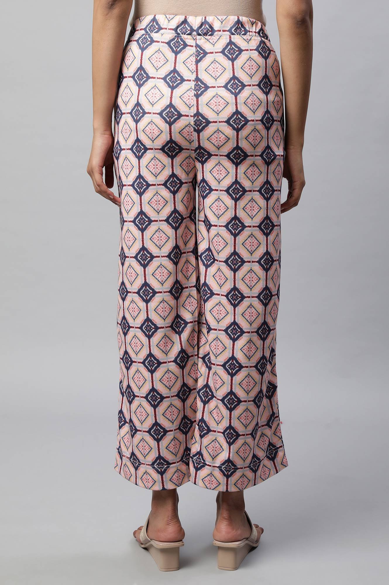 Pink Geometric Printed Straight Fit Palazzo With Elasticated Waist
