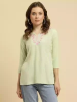Look ethereal in this Aari work Kurti, freshly crafted in the lightness and comfy feel of cotton.