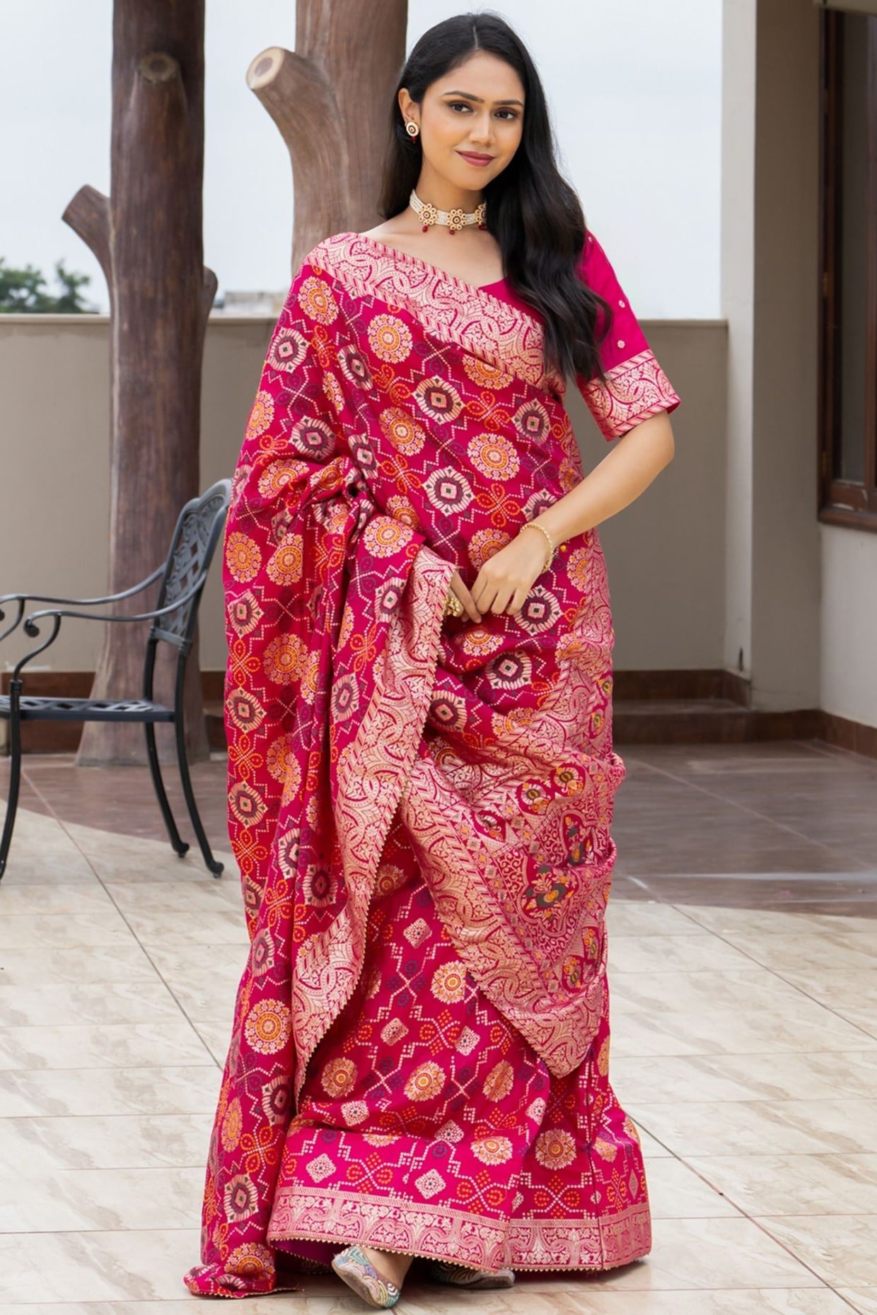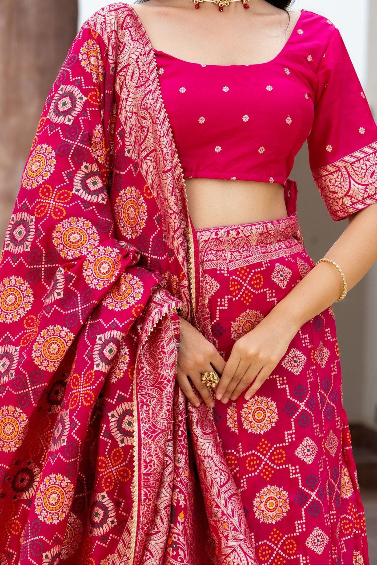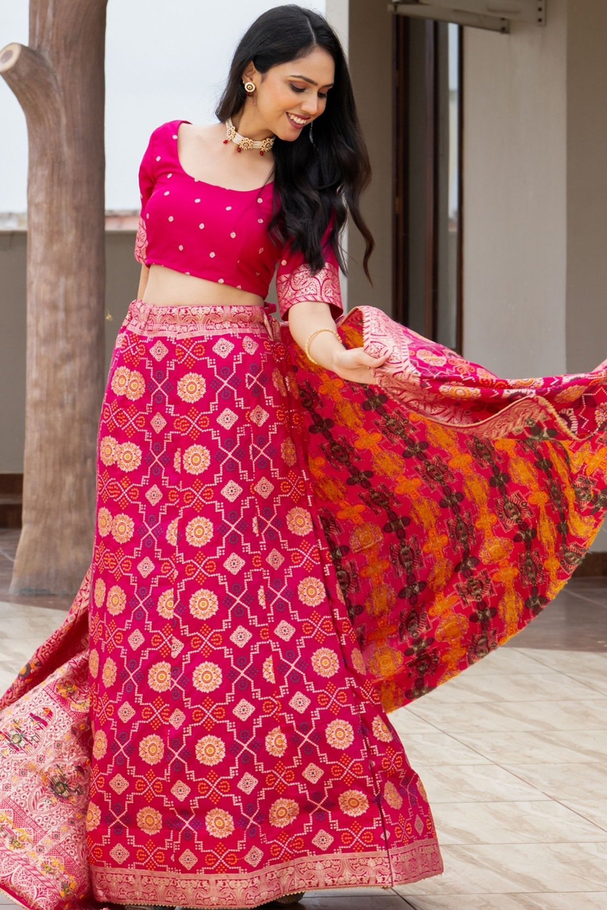Home Lehenga Rani Pink Silk Blend Lehenga Set