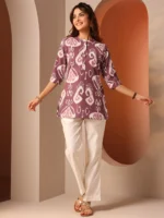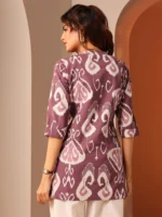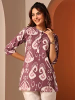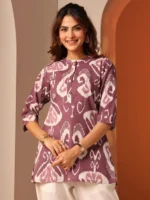 Rust Printed Cotton Straight Short Kurti