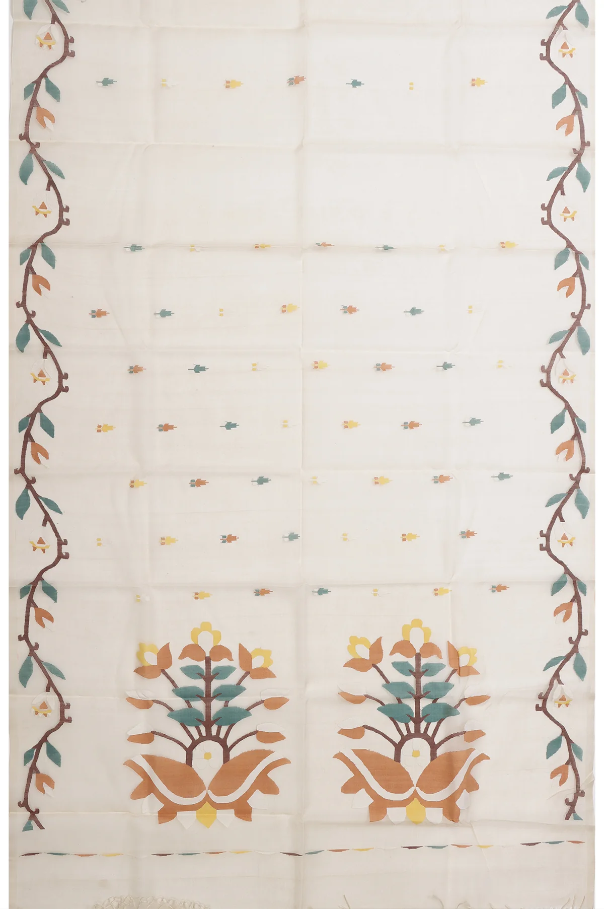 Ironing: Iron the saree on a low to medium setting while it’s slightly damp. Use a cotton or muslin cloth on top of the saree to protect delicate embroidery or zari work.