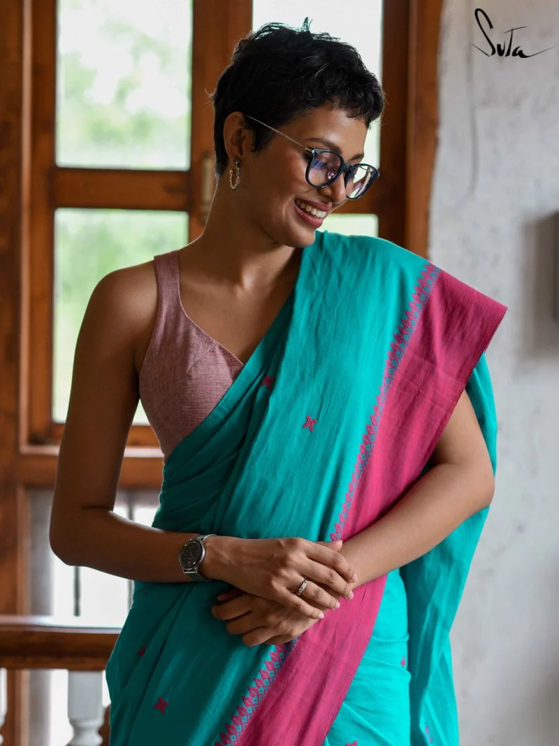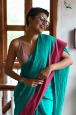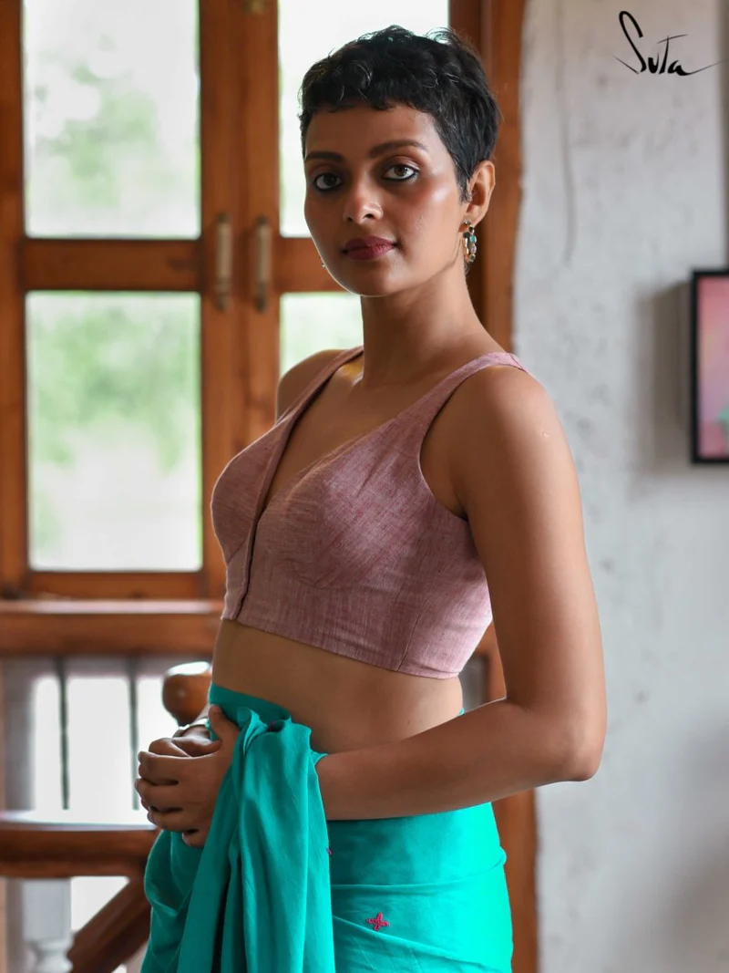 Malika x Rozaana | Deep Neck Saree Blouse in Peppermint Green Linen