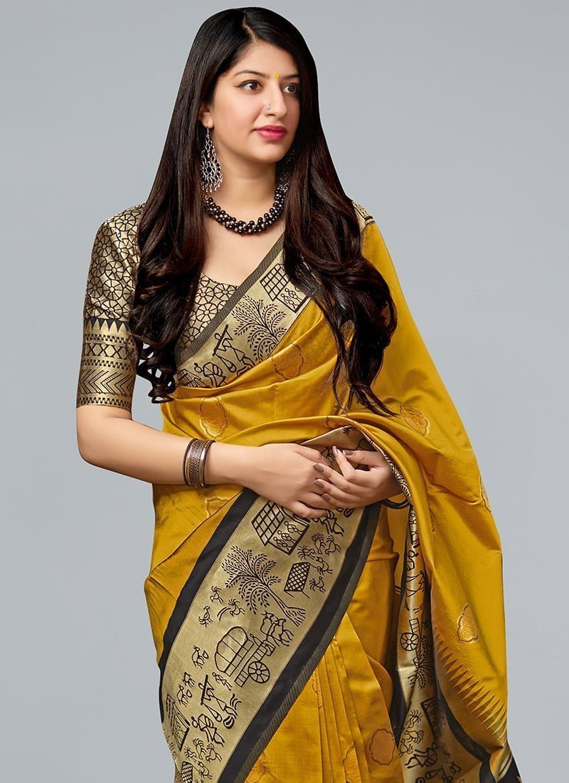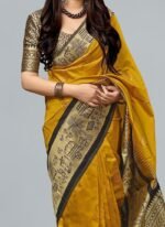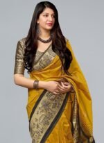 Stunning Mustard Banarasi Silk Saree Festive Wear