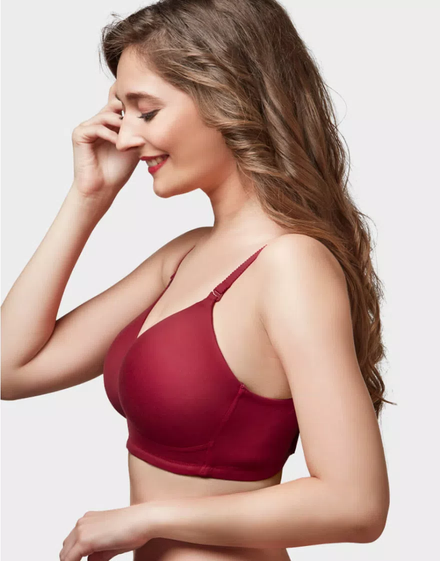 Home Bra Non Padded Bra Wine Red Moulded Feather Non Padded Full Coverage Women Bra