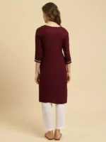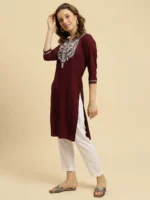 Home Kurtis Wine Silk Embroidered Kashmiri Kurti