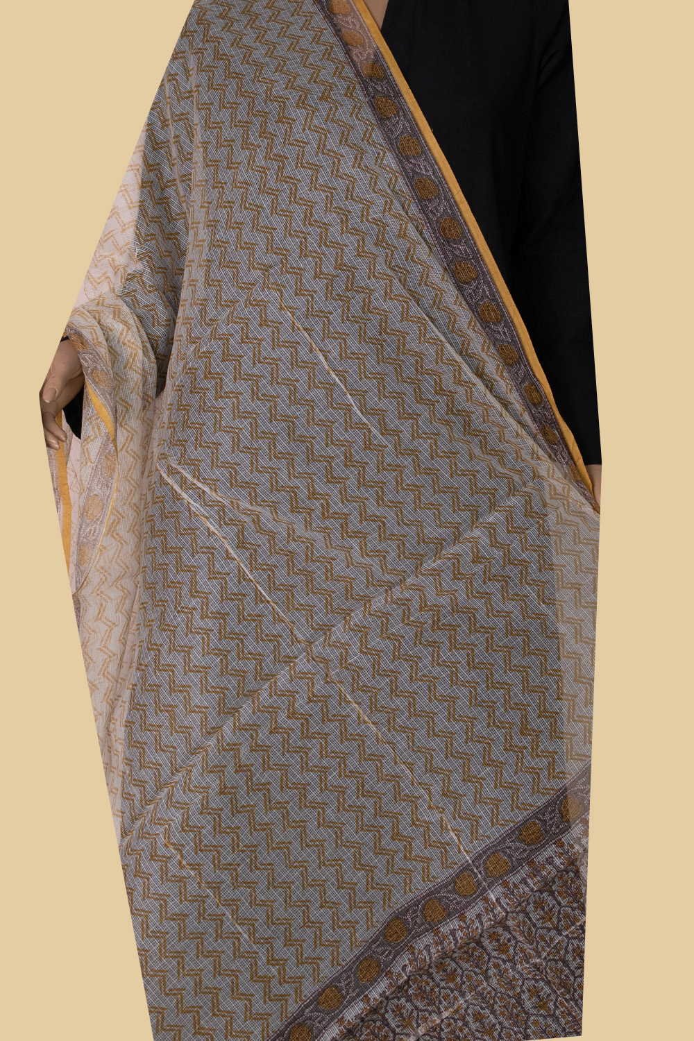Home Dupatta Zig Zag Pattern Block Printed Kota Cotton Dupatta